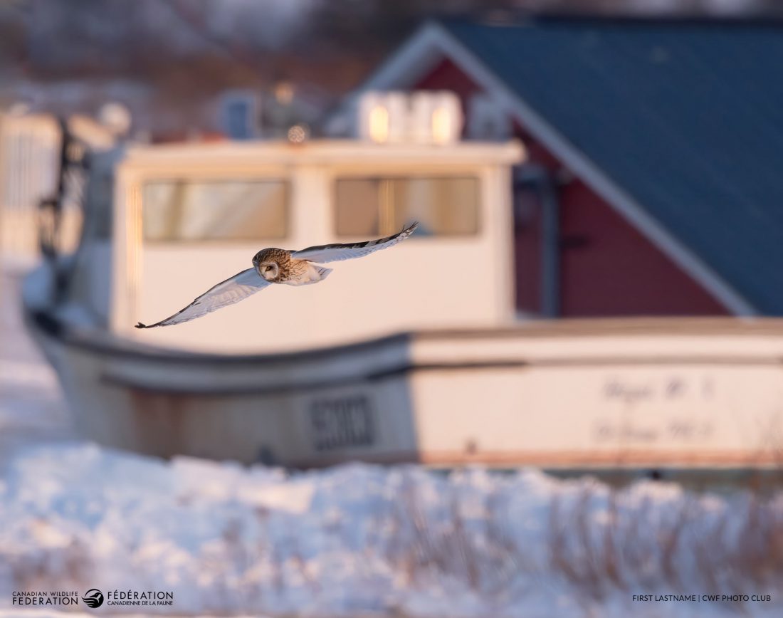 Glen Strickey first headed to this fishing wharf after hearing reports of a Short-eared Owl in the area. Over the next 10 days, he made the 60-minute drive after work, logging more than 1,000 kilometres in search of the elusive raptor. He spotted the owl several times, and on the day, he captured this photo, it was hunting in a field near the wharf – its long wings sweeping through the air as a fishing boat framed the scene.