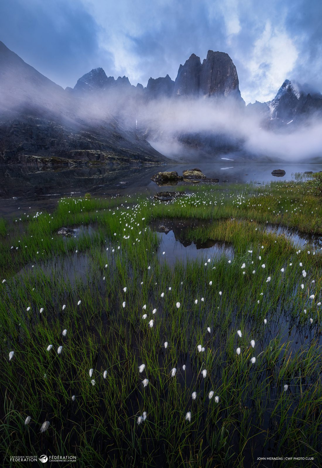 After a grueling week-long trek through Tombstone Territorial Park with a 70 lb backpack, John Meragias camped for two nights in the pouring rain, hoping to capture the moody beauty of this rugged wilderness. His persistence paid off at sunrise when he discovered clusters of Cottongrass along the lake’s edge, framed by the jagged mountain peaks. Though modest compared to more colourful blooms, Cottongrass are compelling – especially when juxtaposed by dramatic skies and the untamed terrain of northern Yukon.