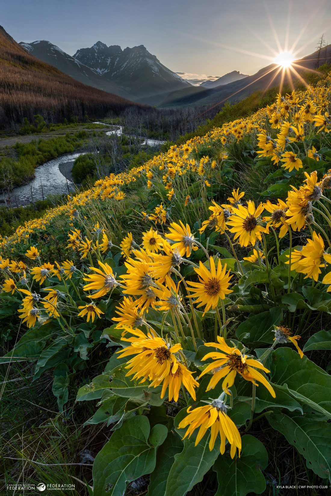 Kyla Black returned to Waterton Lakes National Park five times to find the right conditions to capture this shot. On a late-spring evening, a hillside was covered in balsamroot as the sun set behind the mountain peak – a fleeting moment that made the effort worthwhile.