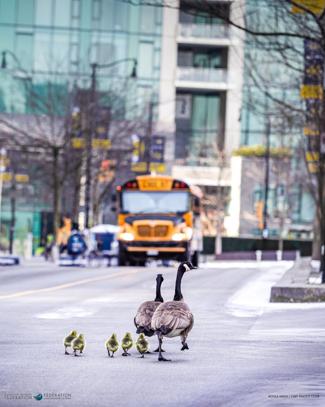 On her way to the 2025 Invictus Games at the Vancouver Convention Centre, Ronia Nash spotted a family of Canada Geese waddled down the busy street. She had only a few minutes to capture the moment – first as they crossed the road, then as they walked away in the neat line. With a school bus in the background, the scene almost looks as though the parents are escorting their goslings to school.