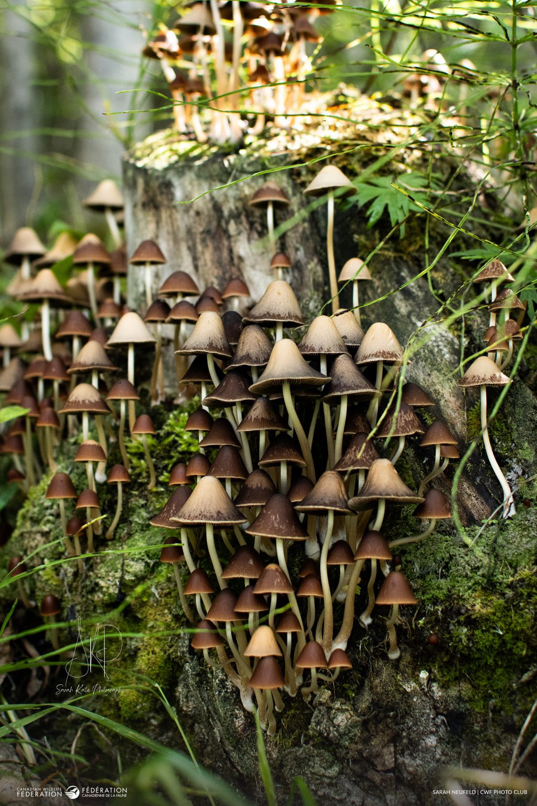 On a quiet nature walk near Dawson City, Sarah Neufeld noticed a cluster of delicate Psathyrellaceae mushrooms rising from the forest floor. Drawn by their contrast and colours, their earthy tones framed by a wash of soft green, she captured this incredible shot.