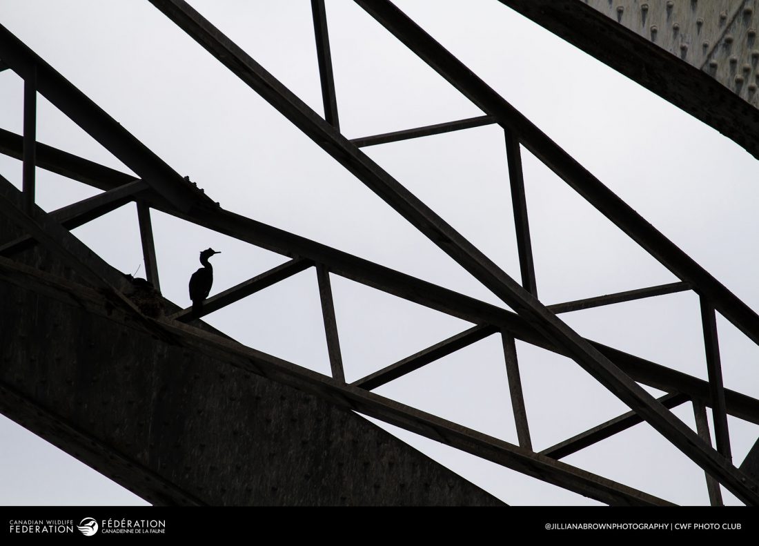 With her husband in surgery, Jillian Brown turned to her camera for solace. Under the Granville Island Street Bridge, she discovered a colony of Cormorants nesting among the steel beams. The birds leapt from the metal structure, soaring toward the ocean, on the hunt for food. The graceful contrast between the birds and the harsh lines of the bridge brought Brown back to the bridge time and time again. Look closely, and you’ll spot a nest tucked behind the highlighted Cormorant, with its partner nestled upon it.