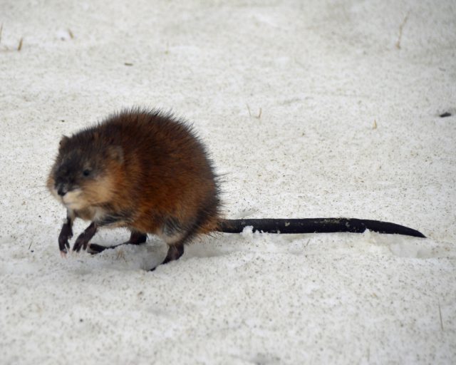 Même les rats musqués sont occupés sous la glace. Ils créent des abris pour se nourrir, appelés des huttes. Pour ce faire, ils poussent des plantes aquatiques à travers des trous ou des fissures dans la glace, créant ainsi une petite structure en forme de dôme. Ils utilisent les huttes pour se reposer lorsqu’ils sont à la recherche de nourriture. Vous avez peut-être même remarqué ces petits tas sur la glace. Ils rongent la glace tout au long de l’hiver pour garder les trous ouverts!
